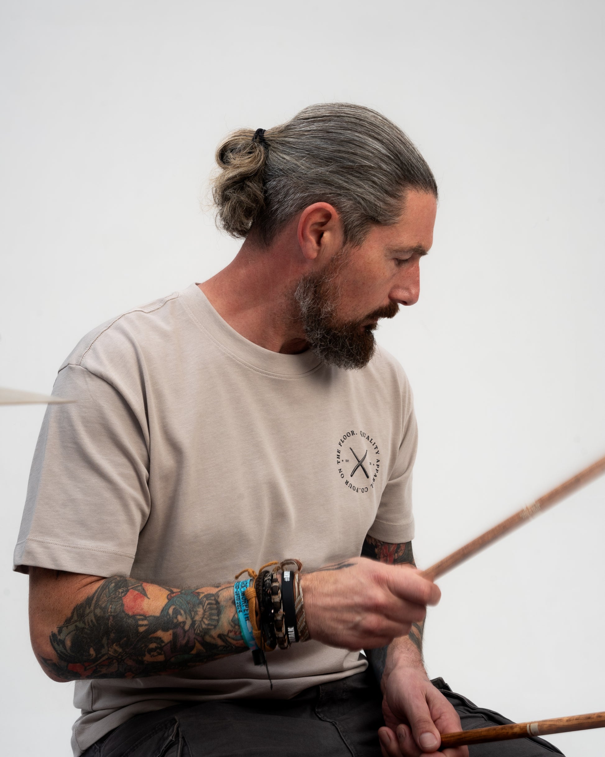 Made from 100% organic combed ringspun cotton, this tee delivers an ultra-soft feel with a structured yet relaxed fashion fit. The subtle front logo design keeps it understated but unmistakably drummer-driven — made for those who live to create rhythm on and off stage.