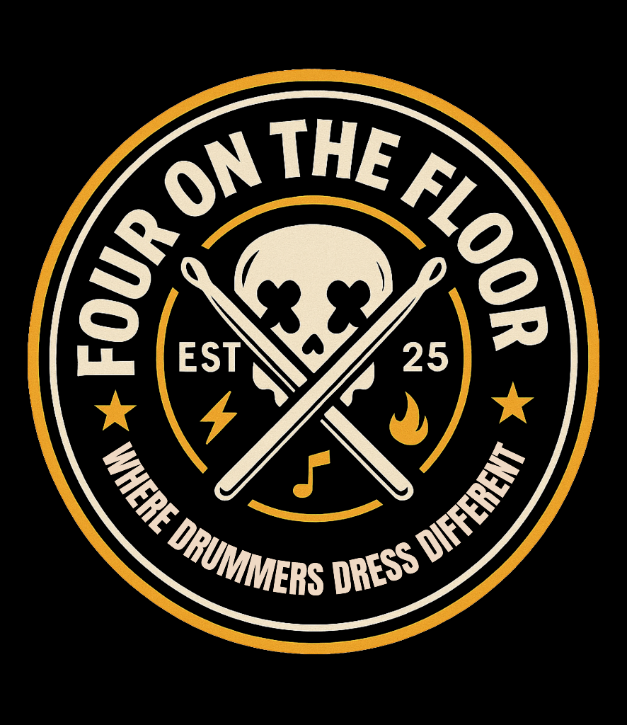 Featuring the Street Crest design — a bold skull-and-sticks emblem framed by lightning bolts, flames, and our statement “Where Drummers Dress Different” — it’s a mark of identity for those who carry rhythm wherever they go.