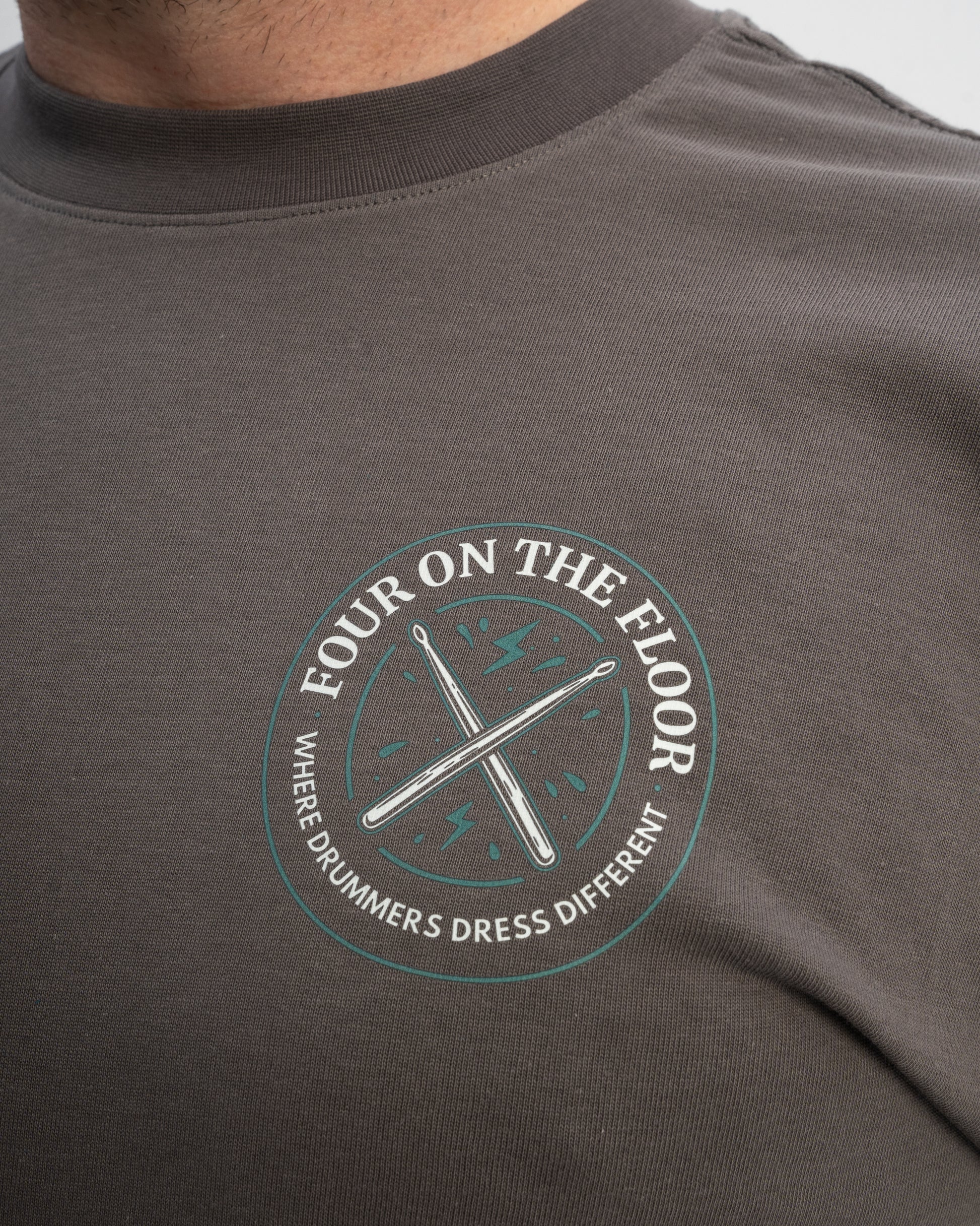 Part of the Core Collection, this shirt embodies the Four on the Floor philosophy: uniting drummers through wearable creative art and unapologetic individuality.